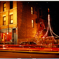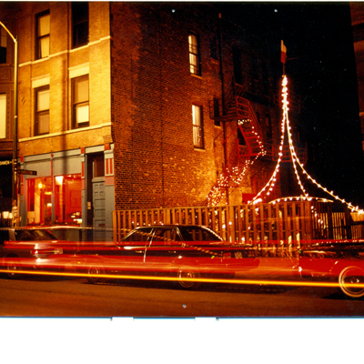 Mission was to construct an edifice in the outdoor restaurant garden under which diners can dine. End result is the Eiffel Tower constructed from electrical conduit and a string of variety store light bulbs.